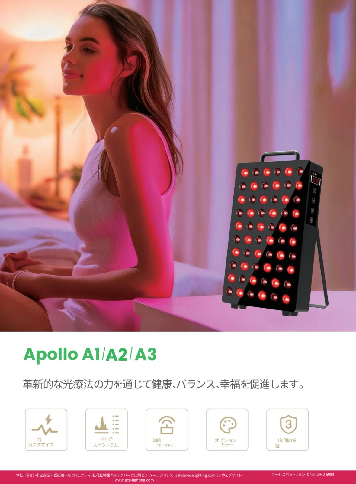 3つのライトモード:660nm赤色光(コラーゲン生成・肌ケア)、850nm近赤外線(筋肉回復)、そして両方の効果が得られる複合モード。