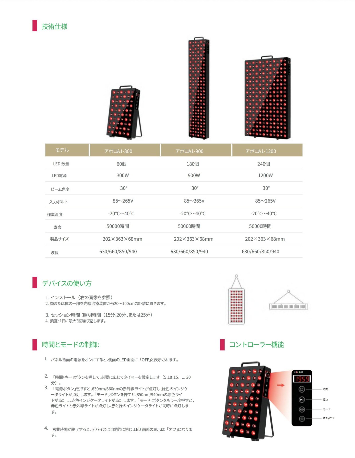 高効率設計:赤色光と近赤外線の比率が1:1、115mW/cm²の高照度でより迅速なトリートメントを実現、60度の照射角度で均一な照射範囲を確保。