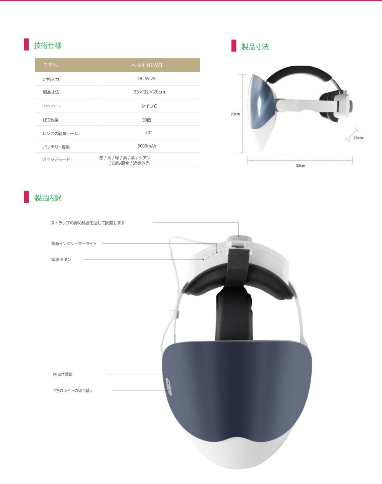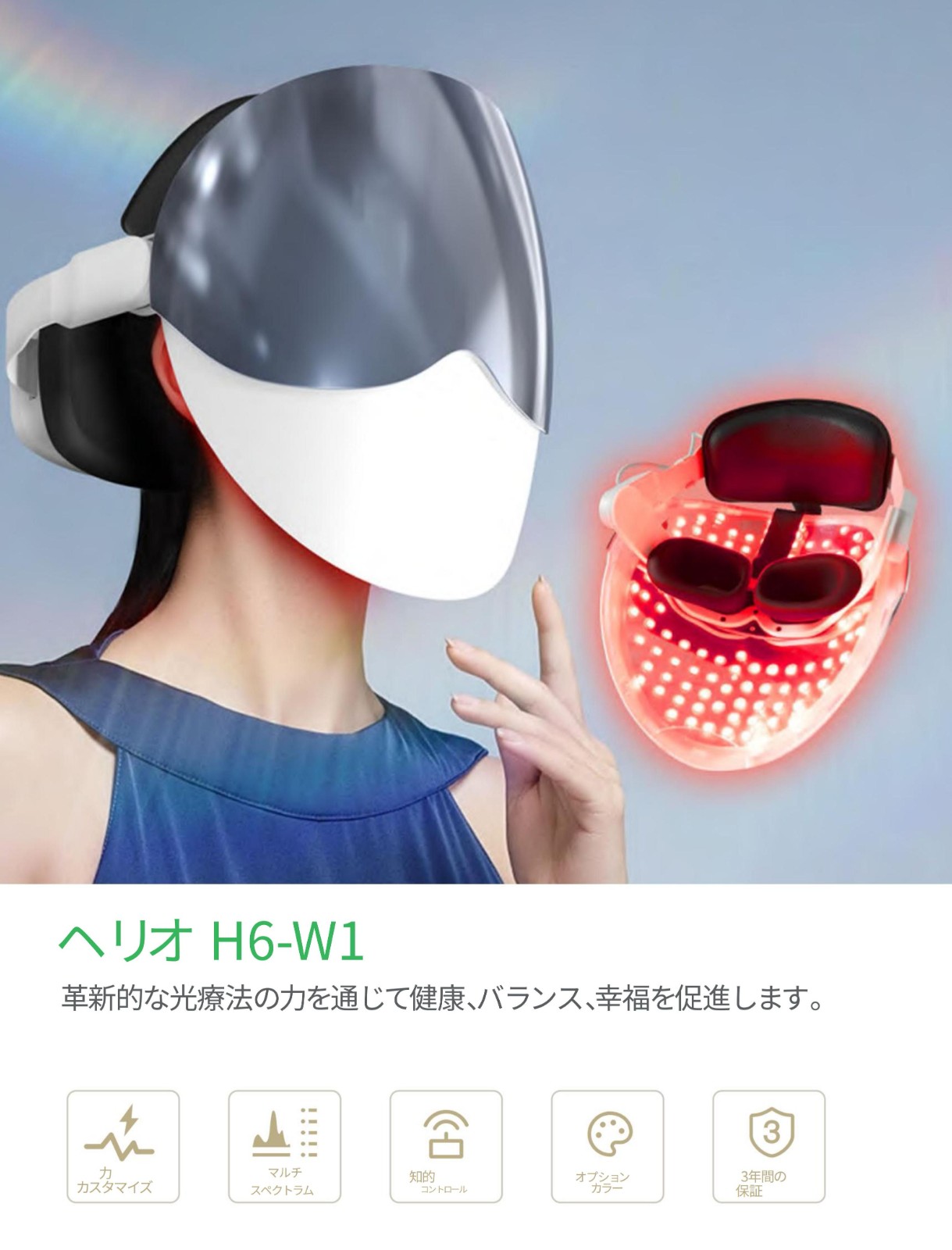 多用途な光照射機能:赤色光や赤外線を含む8色の光で、